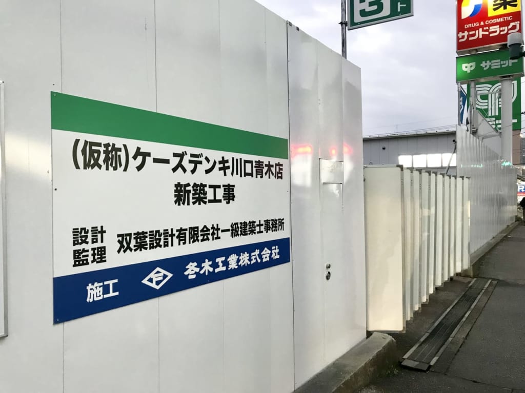 青木3丁目に新しくオープン予定の電気量販店「ケーズデンキ 川口青木店」。