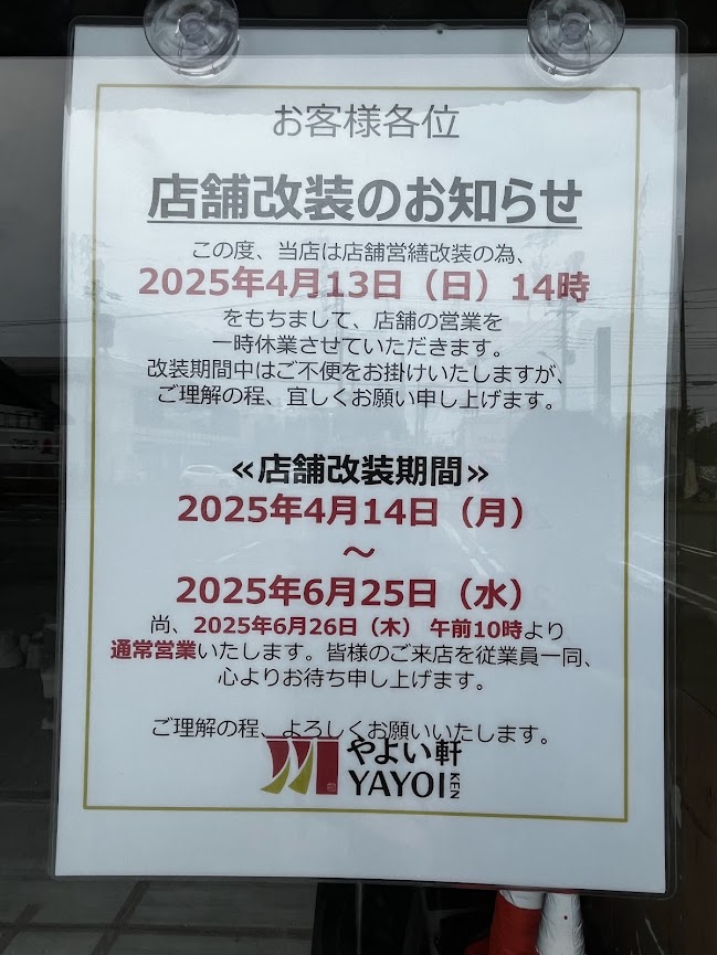 店頭の案内によると、リニューアルオープンは2025年6月26日(木)のようです。