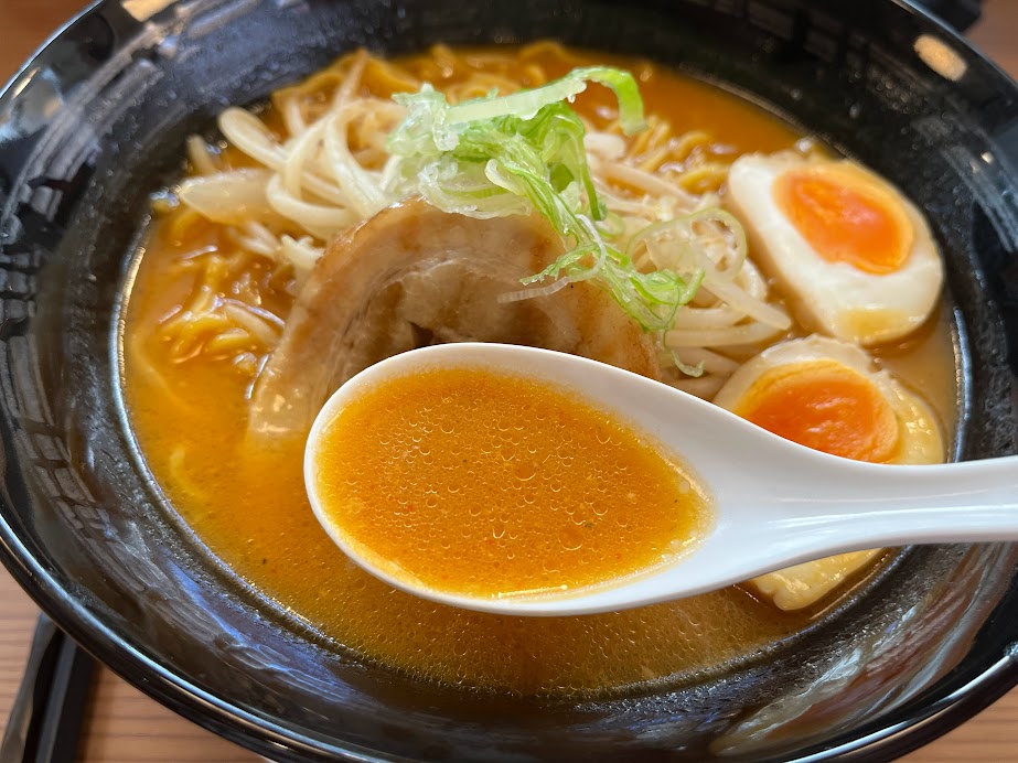北海道産の赤味噌と白味噌をブレンドしているので、あまりくどくなく飲みやすいスープになっています。