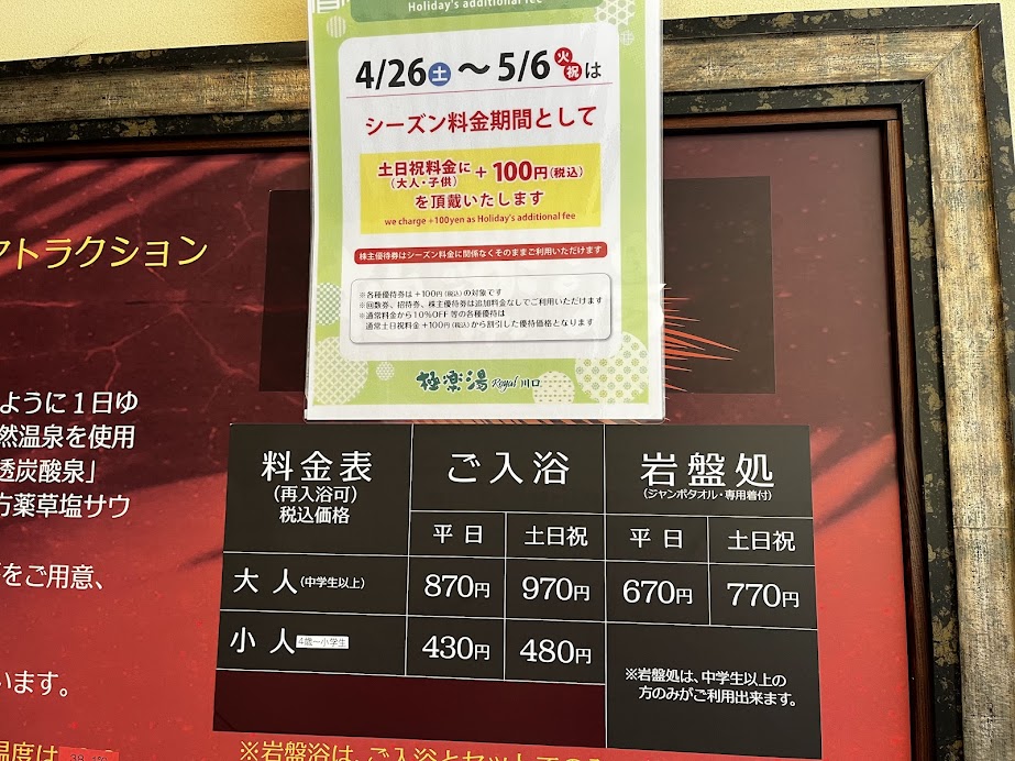 取材日はゴールデンウィーク期間だったこともあり、シーズン料金が加算されました。