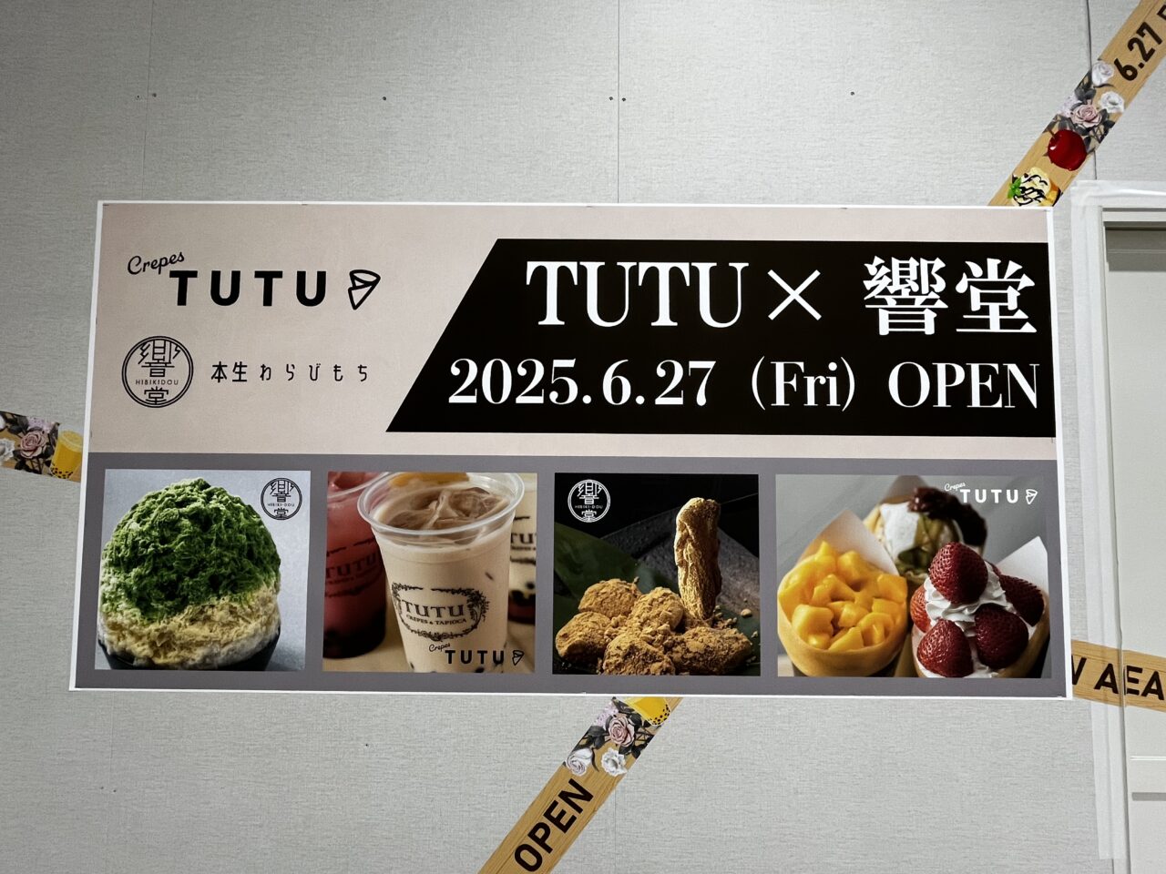 クレープ専門店「TUTU」の見た目も華やかで、食べても美味しいこだわりクレープと、和風スイーツ専門店「響堂」の本生わらび餅スイーツが楽しめる欲張りなお店です。