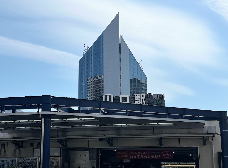 JR川口駅東口周辺に広がるペストリアンデッキからもはっきり見える場所に、