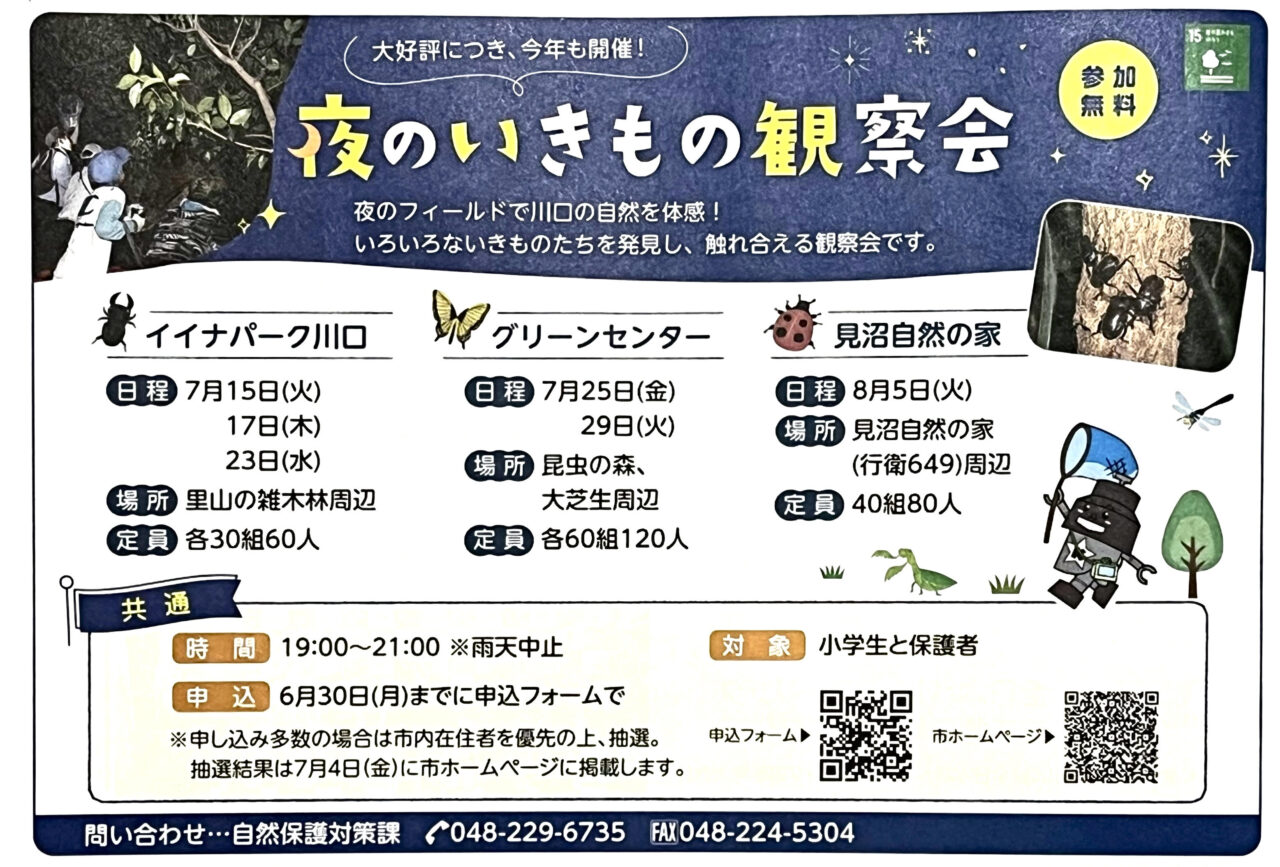 【川口市】夜のフィールドで生きものと触れ合う「夜のいきもの観察会」が市内 3会場で開催されます!