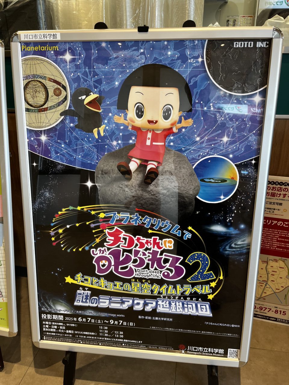 また、川口市立科学館内にあるプラネタリウムでは、同じく2025年6月7日(土)から新番組「プラネタリウムでチコちゃんに叱られる!2 チコとキョエの星空タイムトラベル 謎のラニアケア超銀河団」が始まりました。