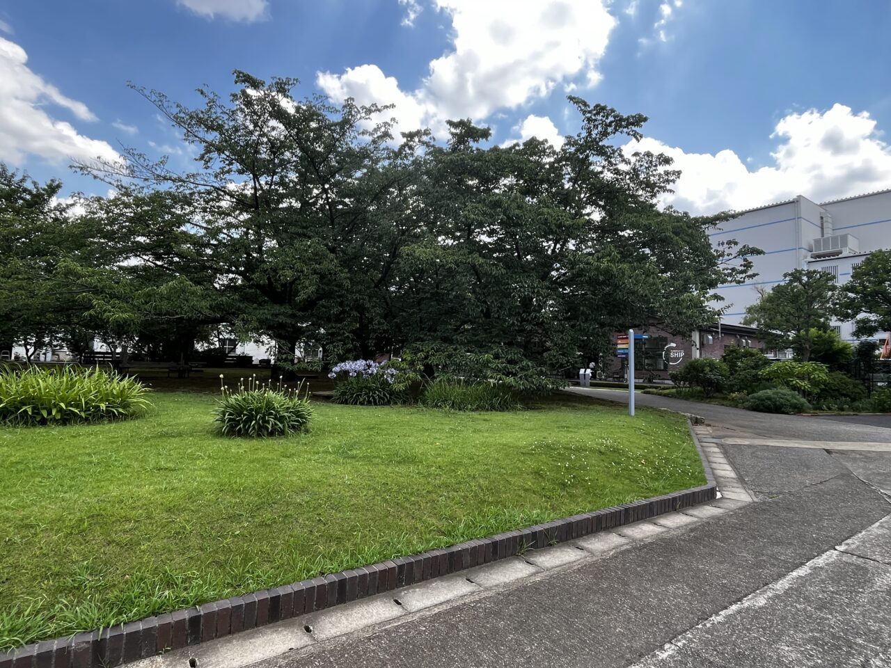 工場が多い地域にあるとは思えない、青々とした中庭が美しい憩いのスポットです。