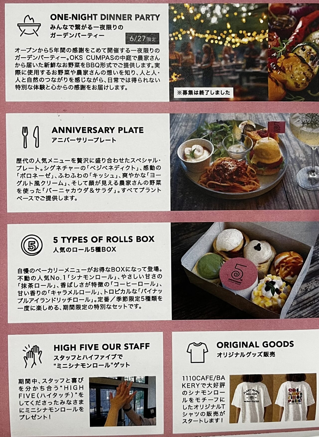 オープン5周年を記念して、2025年6月25日(水)〜29日(日)の間、感謝の気持ちを込めた特別なメニューが提供されるそうです。