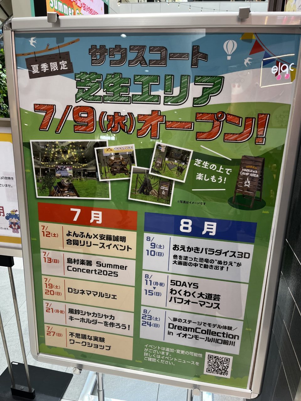 サウスコート1階に夏季限定で芝生エリアが2025年7月9日(水)よりオープンしています。