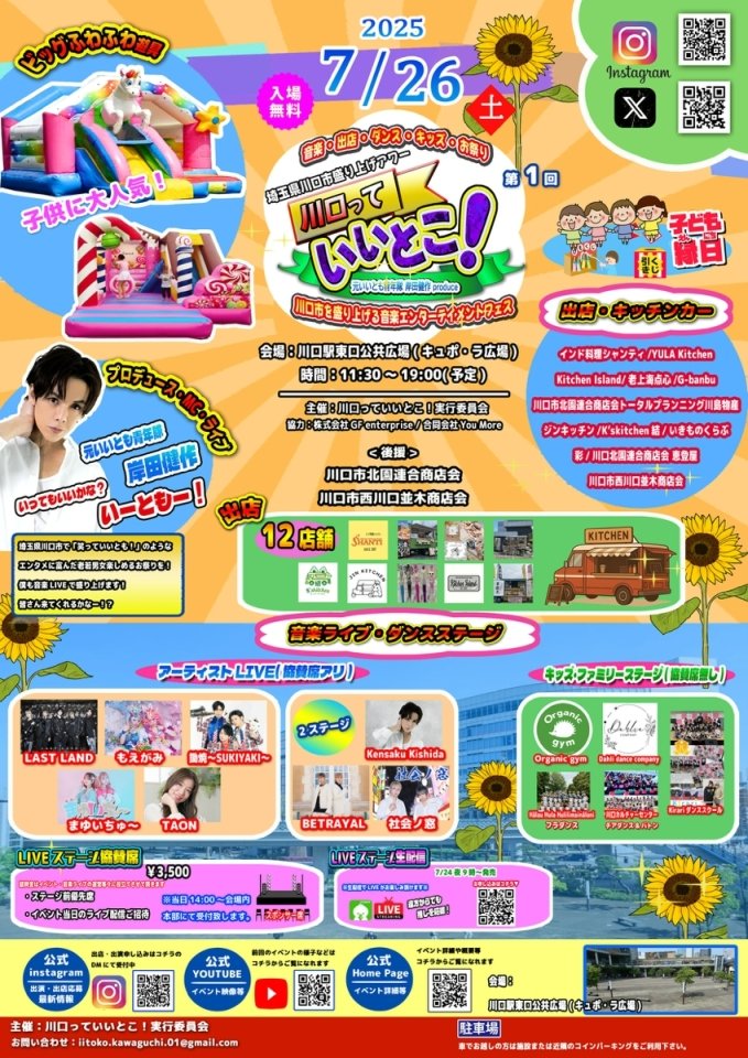 【川口市】本日開催!元いいとも青年隊・岸田健作がプロデュースする「川口っていいとこ!」が7月26日(土)に開催されます!