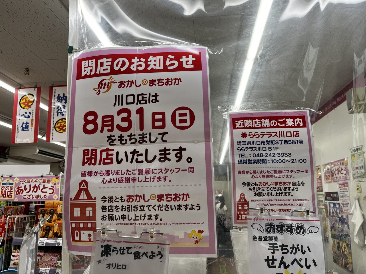 【川口市】樹モール商店街にある「おかしのまちおか 川口店」が8月31日(日)をもって閉店するそうです。