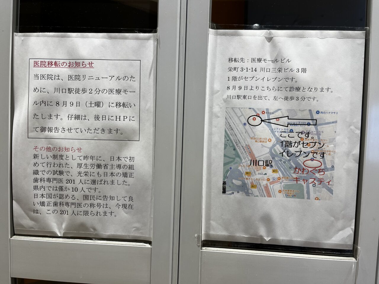 川口駅東口の目の前にある商業施設「かわぐちキャスティ」6階にあった「すずき矯正歯科」が移転したそうです。