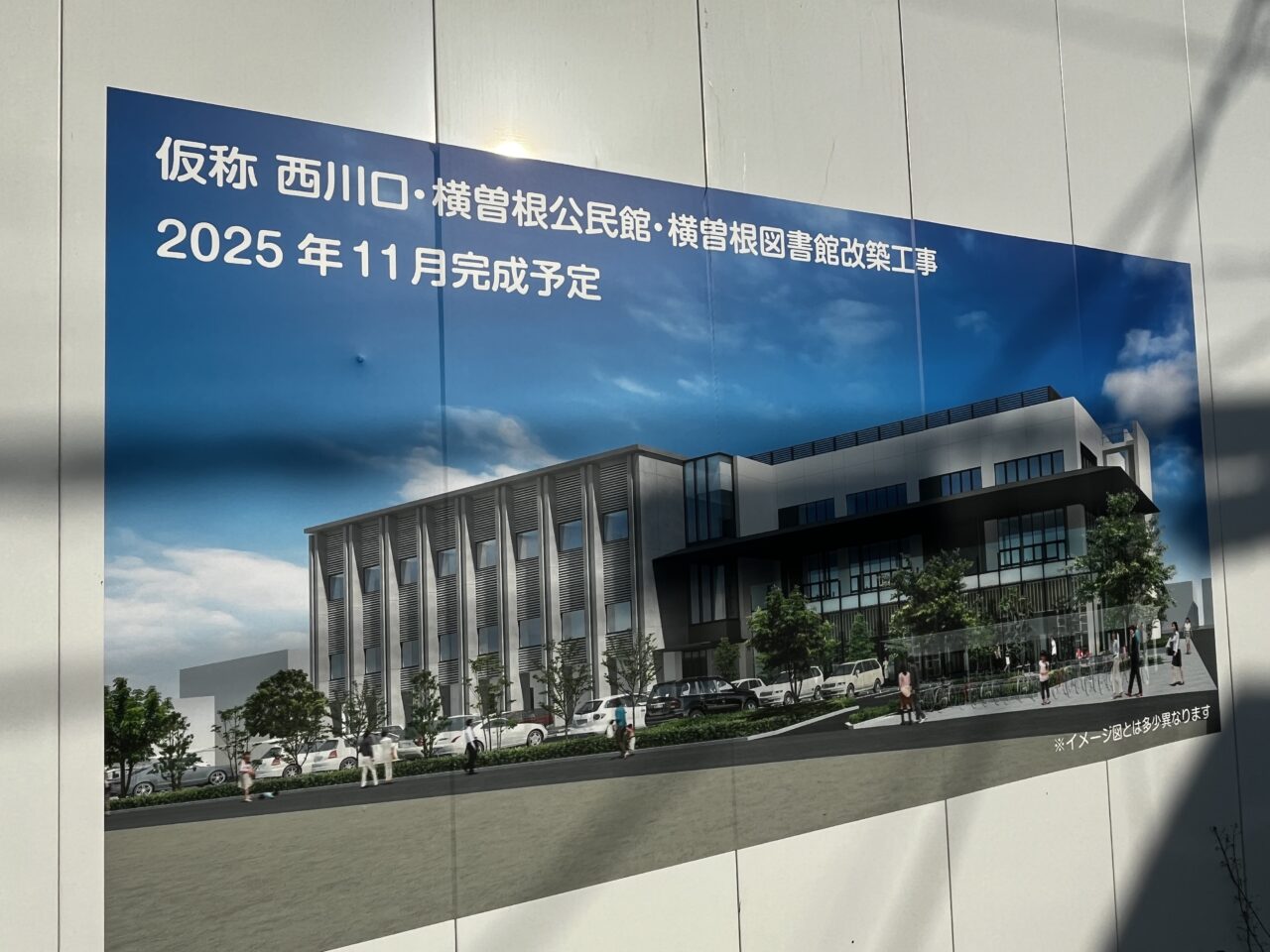 現地の案内によると、建設開始当時は「(仮)西川口・横曽根公民館・横曽根図書館」という名称でしたが、現在は「横曽根公民館・横曽根図書館」という名称を予定しているそうです。