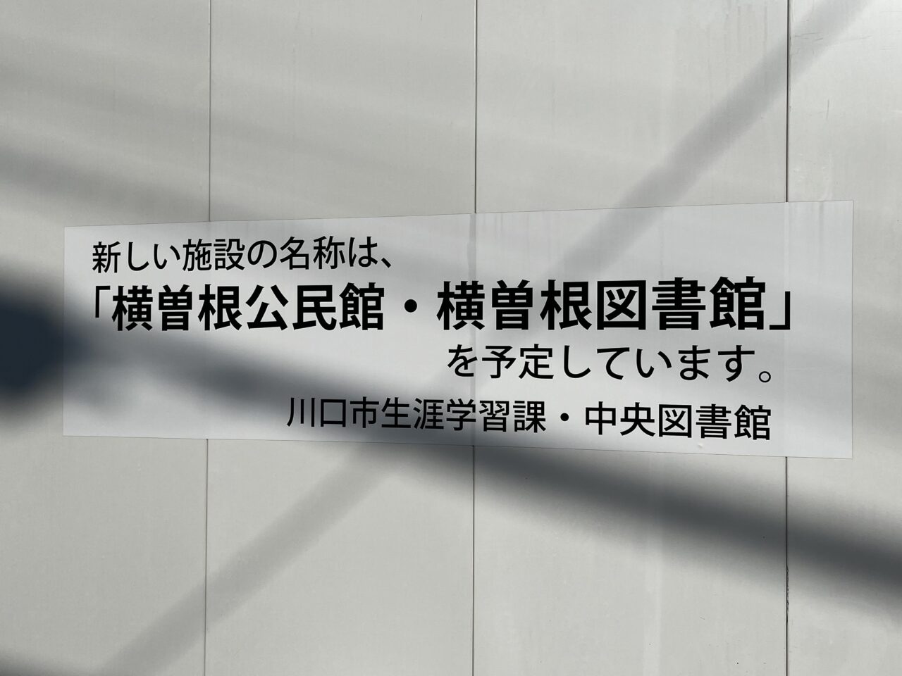現地の案内によると、建設開始当時は「(仮)西川口・横曽根公民館・横曽根図書館」という名称でしたが、現在は「横曽根公民館・横曽根図書館」という名称を予定しているそうです。