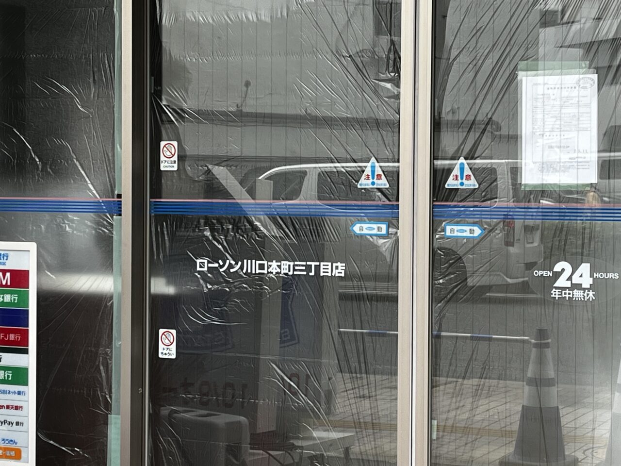 新店舗の出入口には「ローソン川口本町三丁目店」と書かれています。