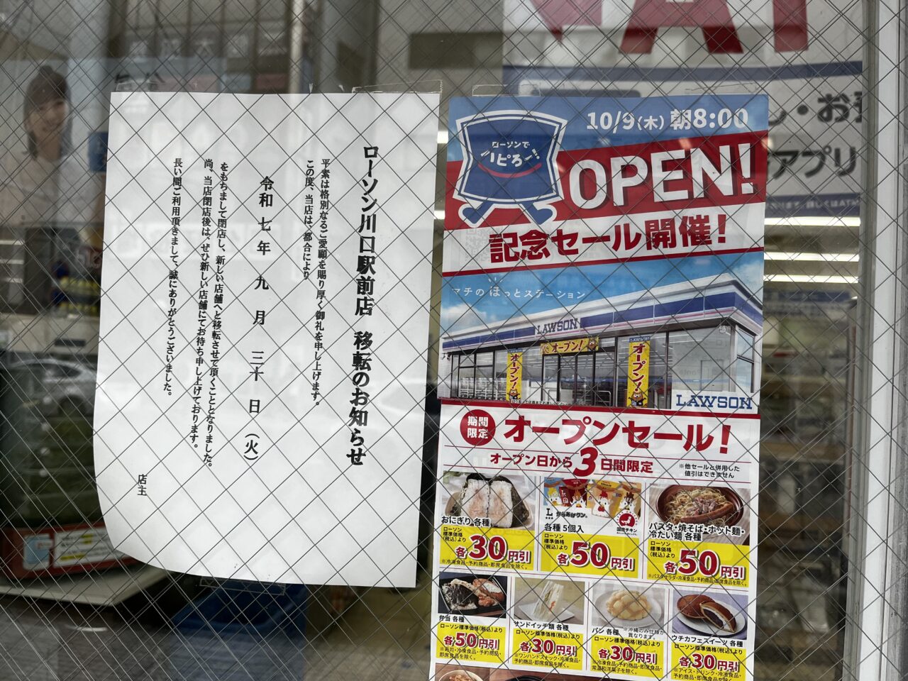 川口本町大通り沿いの「ローソン川口駅前店」が移転のため2025年9月30日(火)をもって閉店するそうです。