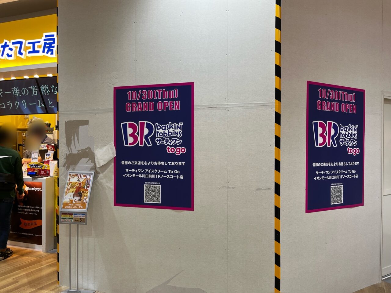 先日、「サーティワンアイスクリーム To Go イオンモール川口前川1Fノースコート店」が2025年秋にオープンするいう情報を紹介しましたが、更にオープン日等の詳しい情報がはいったので紹介したいと思います。
