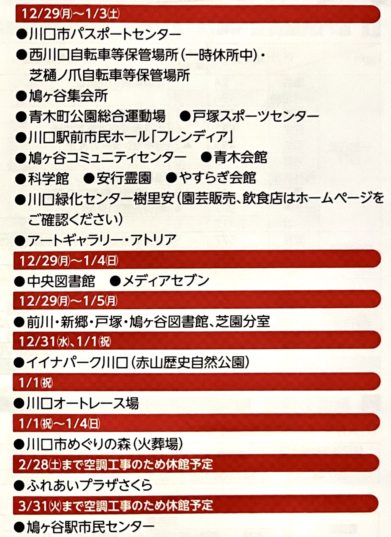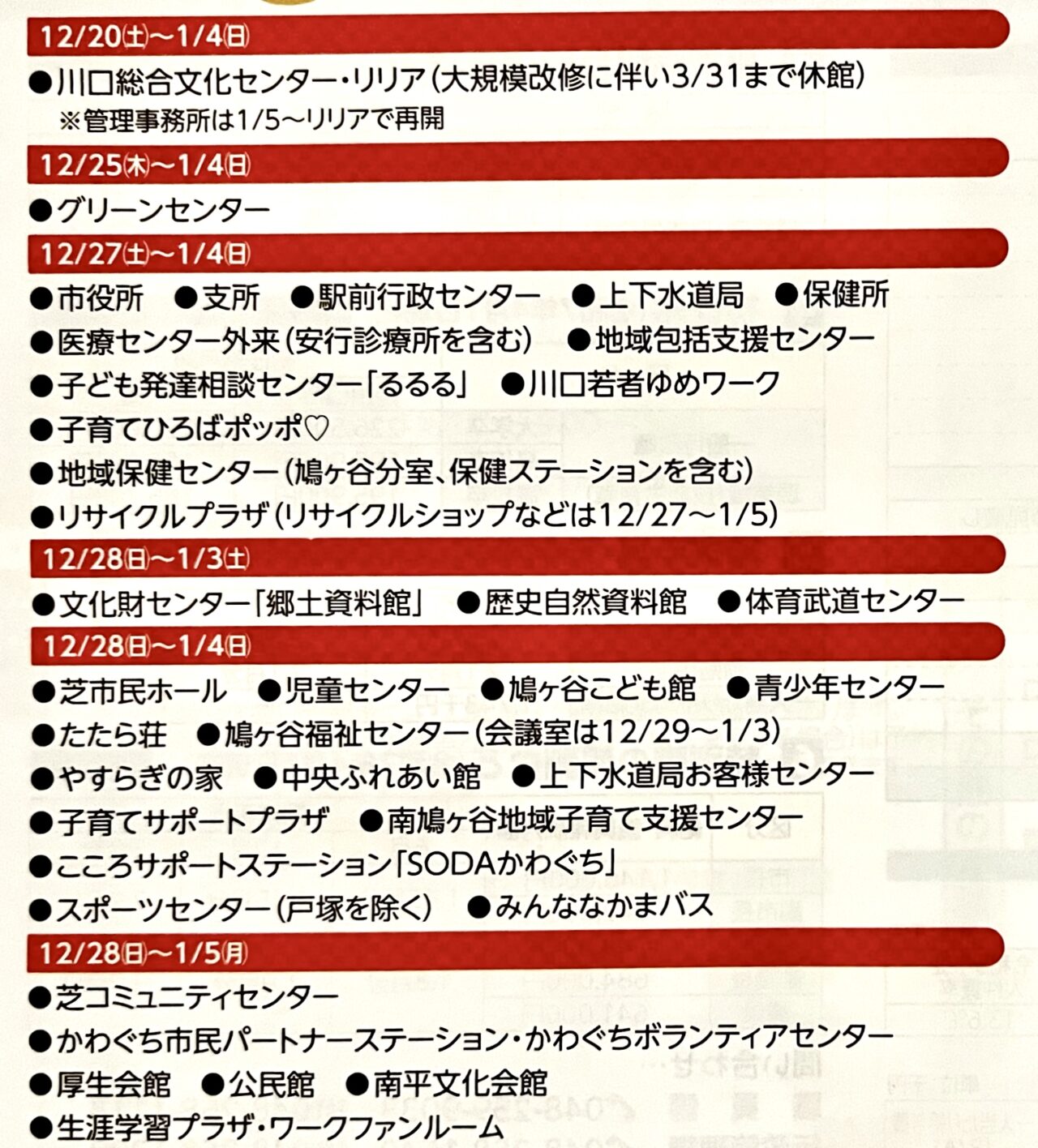 【川口市】2025年もあとわずか。公共施設等の年末年始の予定をまとめてみました!
