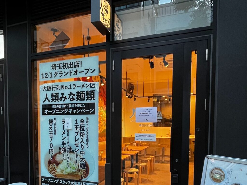 2025年12月1日(月)、ラーメン店「人類みな麺類 埼玉川口店」がオープンしました!