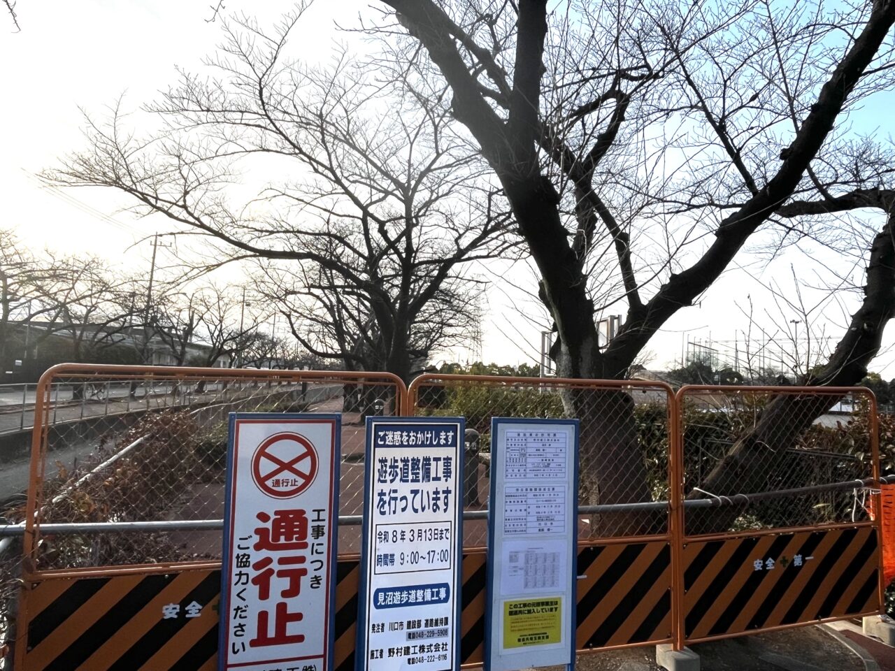 【川口市】お散歩の際はご注意を!見沼遊歩道の一部が3月13日まで通行止めになっていました。
