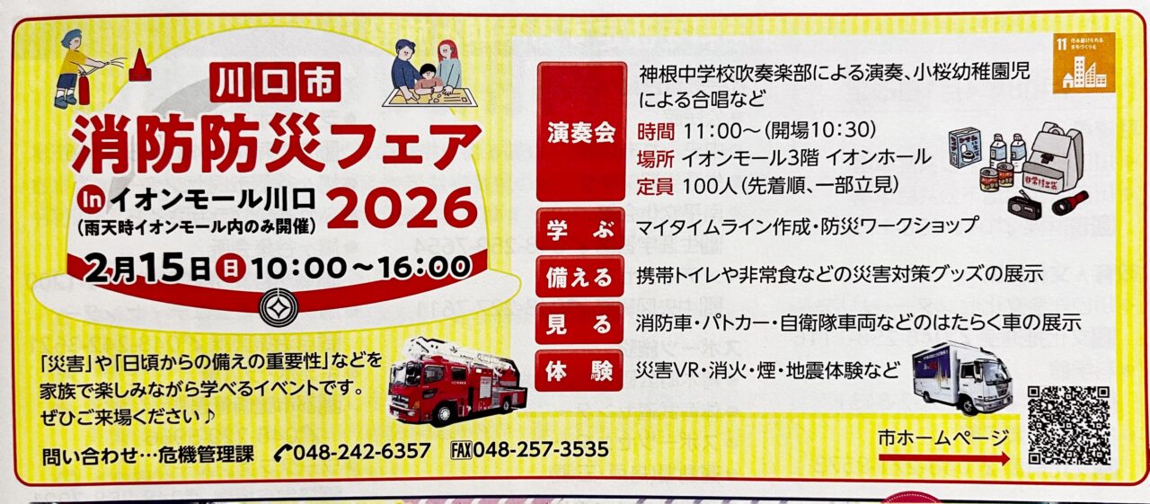 【川口市】もしもに備えて楽しく学ぼう!イオンモール川口で「消防防災フェア2026」が2月15日(日)に開催されます!