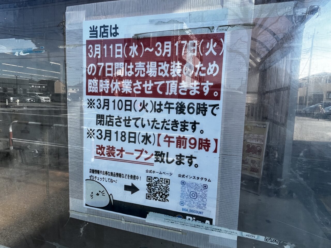 ディスカウントスーパー「ビッグ・エー 川口安行店」が、売り場改装のため2026年3月11日(水)〜17日(火)の期間中一時休業することがわかりました。