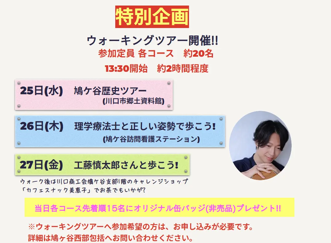 最終日の3月28日(土)には、鳩ヶ谷の歴史あるスポット「地蔵院」にて、完歩を祝うフィナーレのイベントが開催され、キーワードの正解数により福引やプレゼントがもらえるそうです!