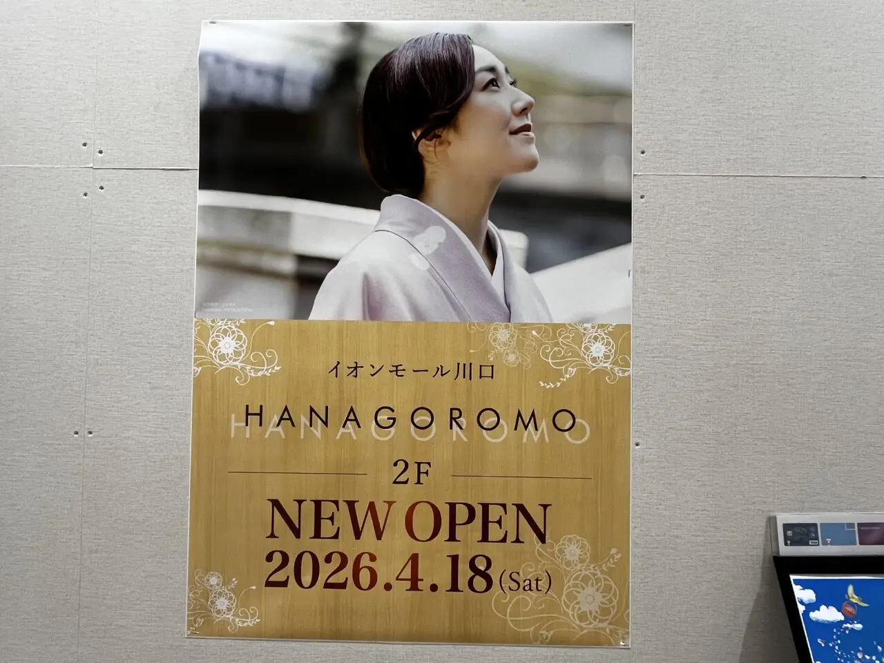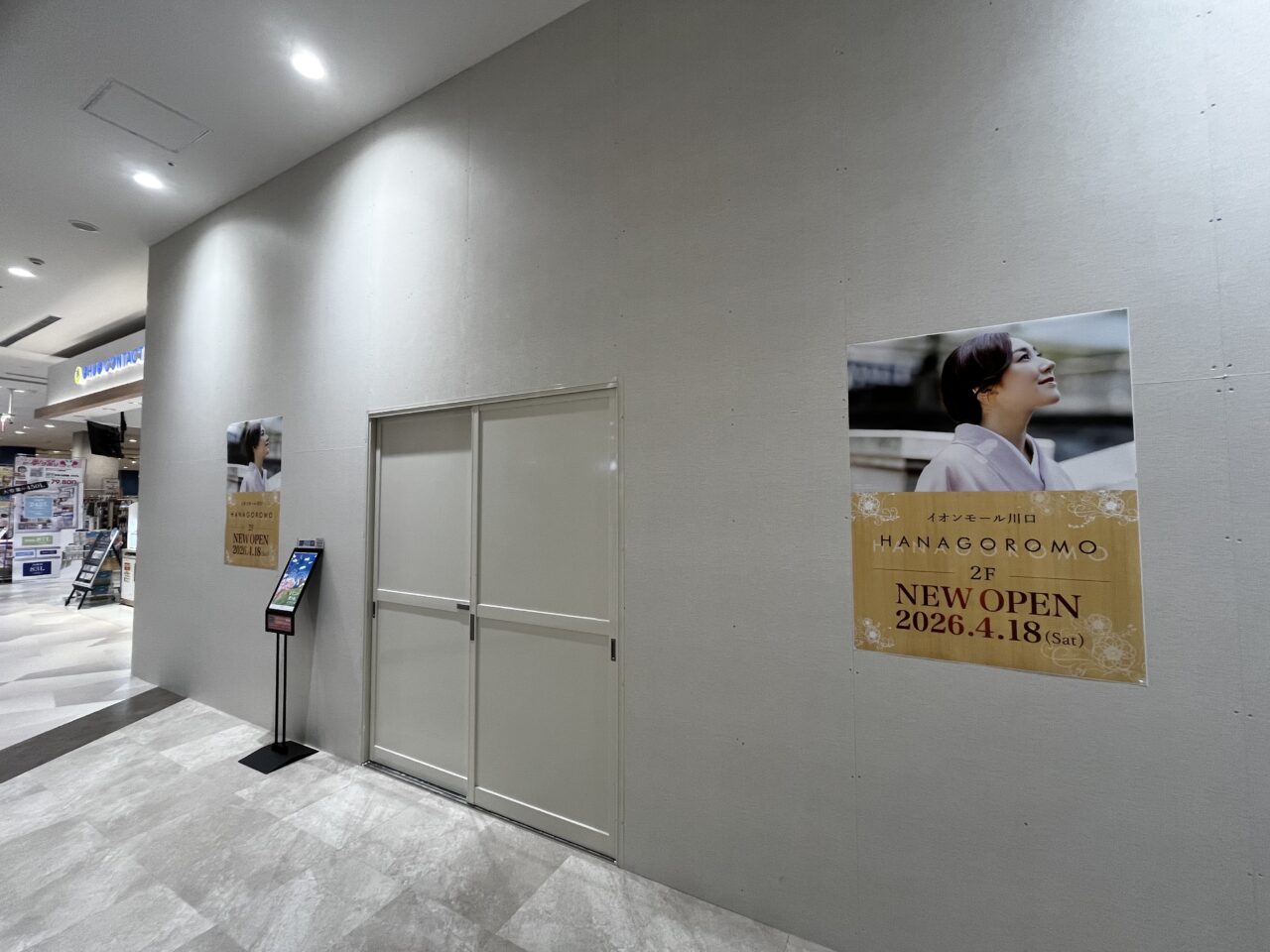 イオンモール川口にオープン予定のきもの専門店「HANAGOROMO」。