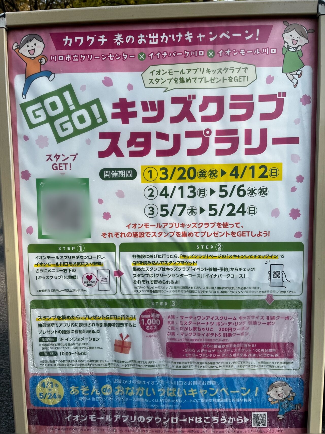 イオンモール川口では、2026年3月20日(金)から、川口市立グリーンセンター×イイナパーク川口×イオンモール川口「GO!GO!キッズクラブスタンプラリー!」を開催しています。