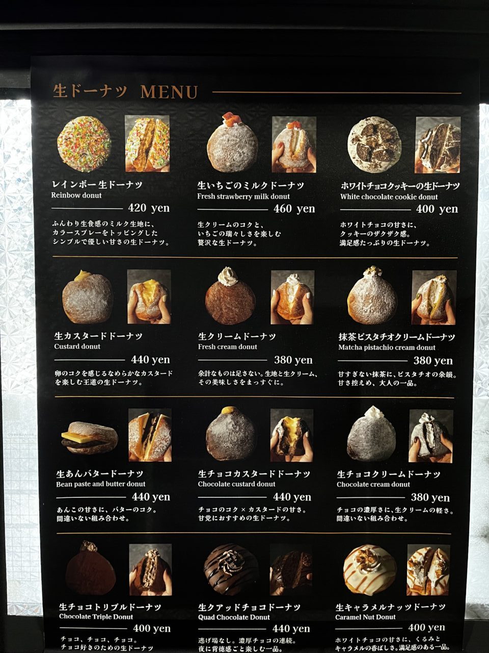 さっそくメニューをチェックしてみると、見た目も華やかなドーナツが並んでいます。