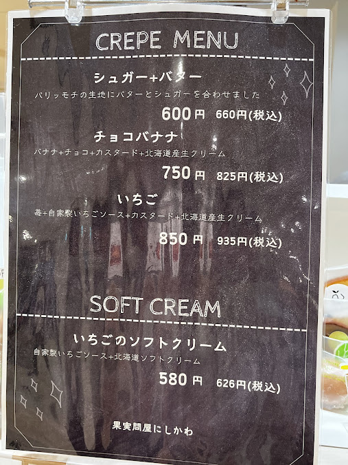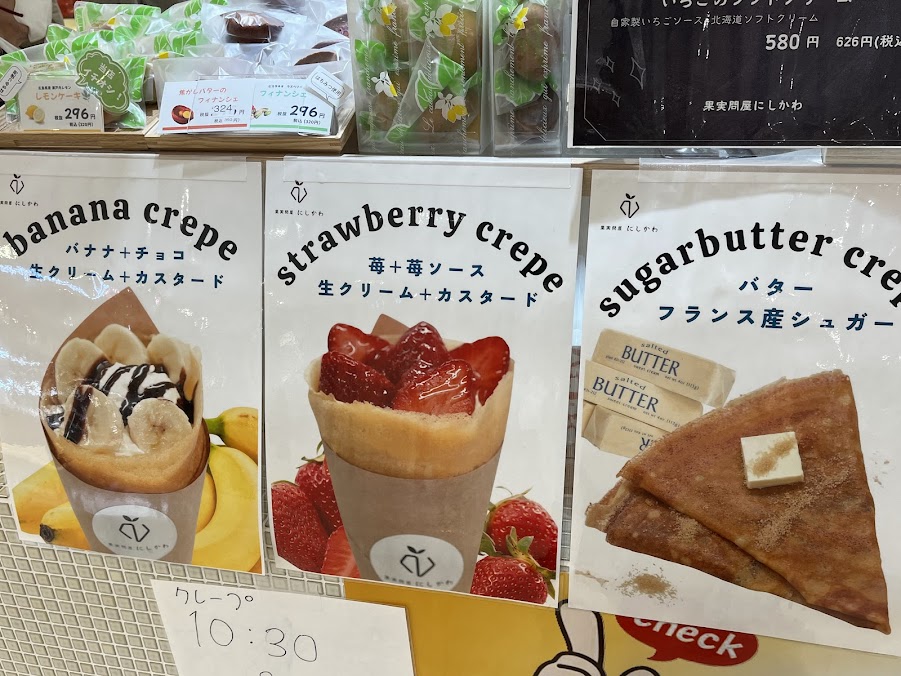 そんな「果実問屋 にしかわ」で、新たにクレープの販売がスタートしているのを発見しました!