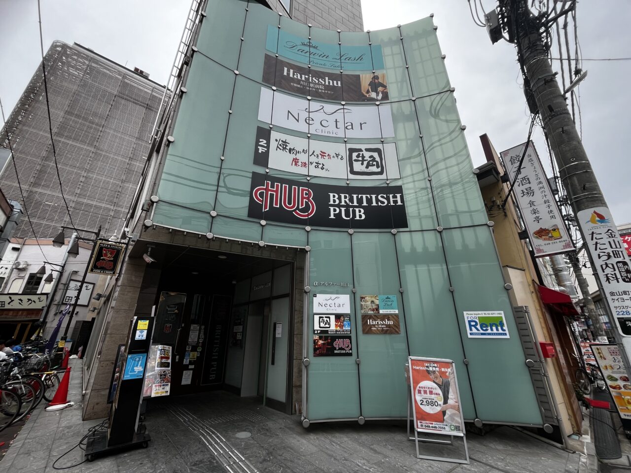 川口駅東口から徒歩5分ほどで、1階には英国風パブの「HUB」が入っているビルの2階です。