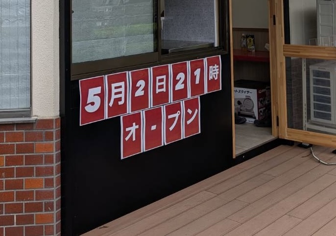 店頭の貼り紙によると、オープン日時は2026年5月2日(土)の「21時」とのこと!